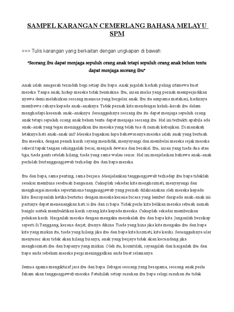Contoh Karangan Cemerlang Bahasa Melayu Spm 1 Pdf